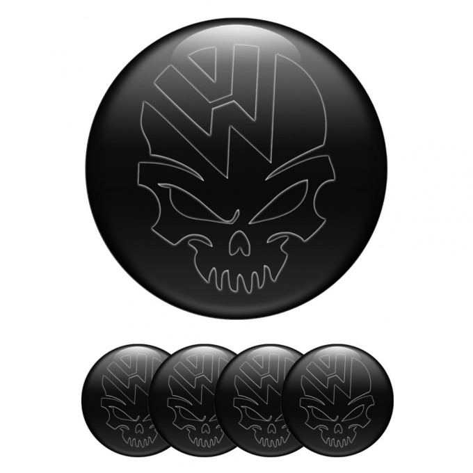 VW Silicone Stickers for Center Wheel Caps Black Base Skull Logo Design