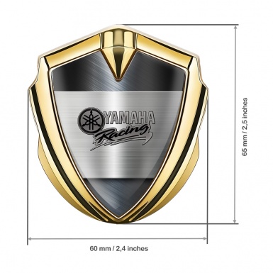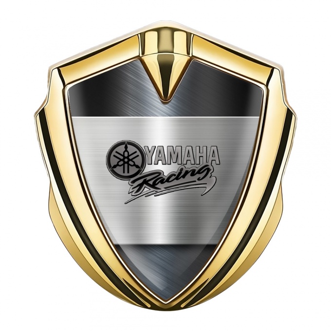 Yamaha Racing Emblem Self Adhesive Gold Brushed Metal Grey Logo