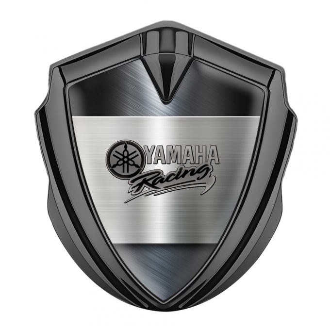 Yamaha Racing Emblem Self Adhesive Graphite Brushed Metal Grey Logo