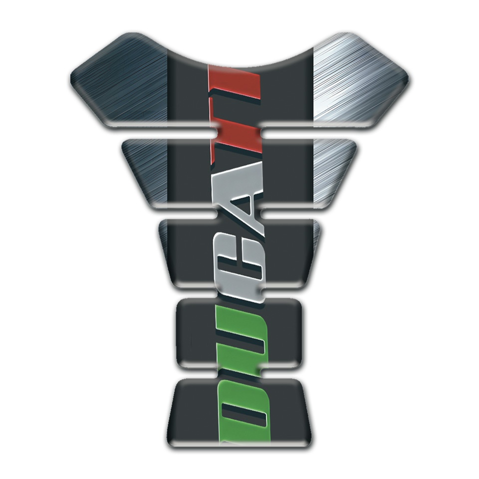 Ducati Tank Guard Pads Polished Background with Colorful Inscription