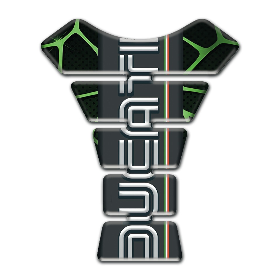 Ducati Tank Protector Black with Green Patterns Base and Vertical Logo