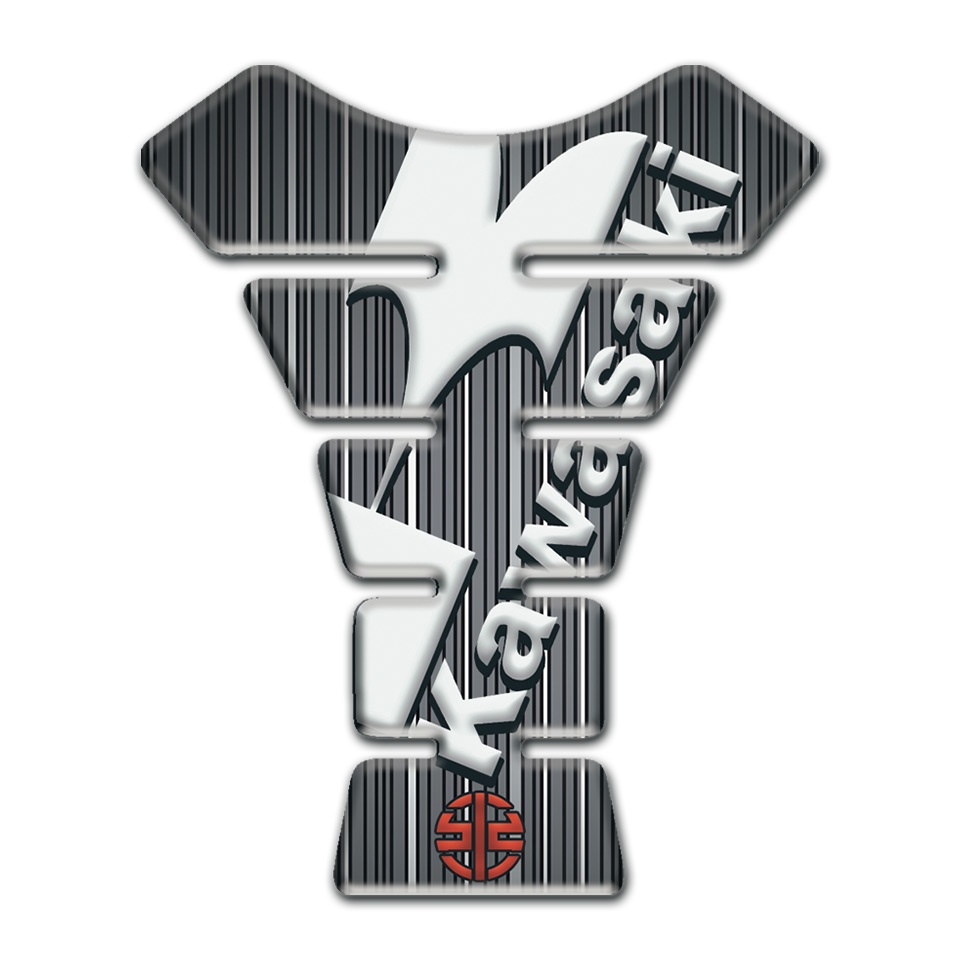 Kawasaki Tank Guard Pads Gray with White Stripes base and Red Small Logo