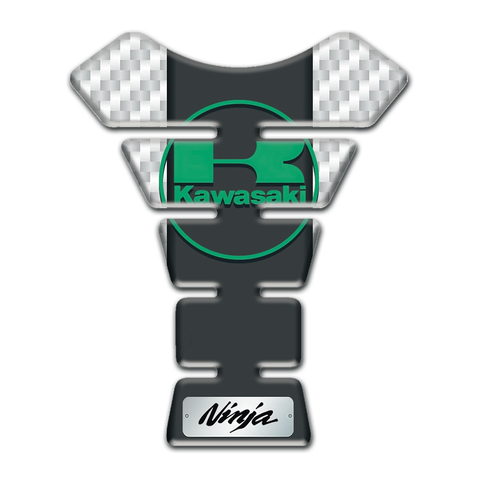Kawasaki Tank Pad Motorbike White Carnon Background Green Logo Style