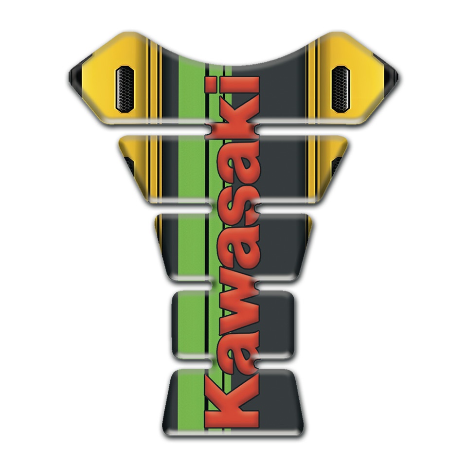 Kawasaki Tank Pad Motorbike Yellow Motif Style Red Logo