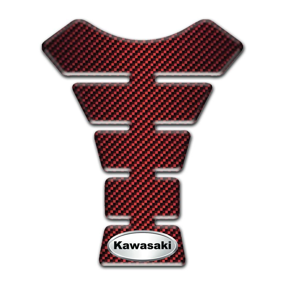 Kawasaki Tank Pad Protector Red Carbon Design Oval Silver Logo Style