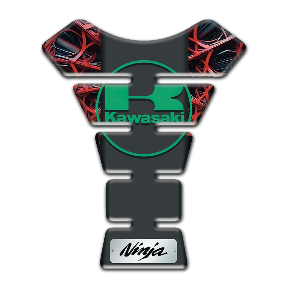 Kawasaki Tank Pad Protector Red Spider Web Style Base Green Logo