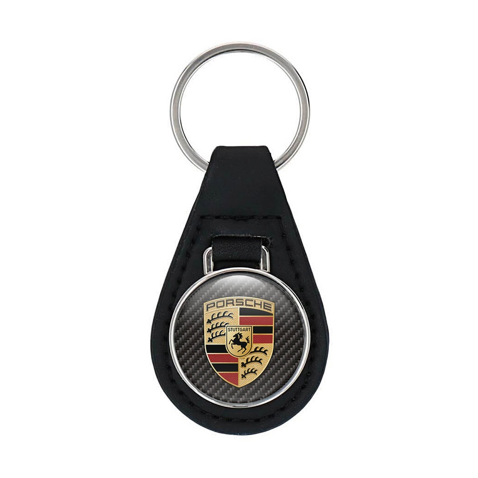 Porsche Key Holder Fob Leather Classic Logo Carbon