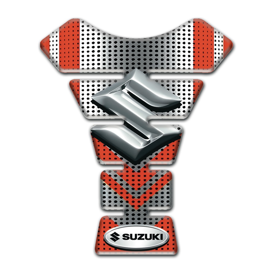 Suzuki Tank Guard Pads Silver Red Base with 3D logo Design