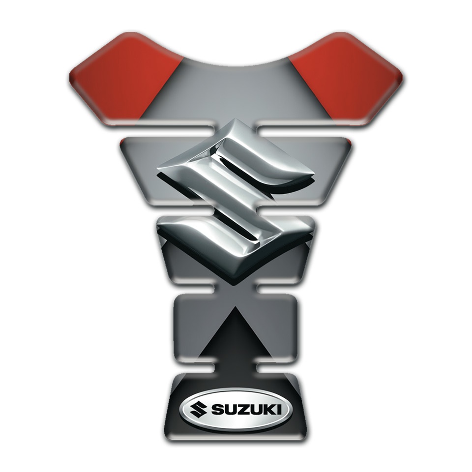 Suzuki Tank Pad Motorbike Gray Red Print with 3D Silver logo