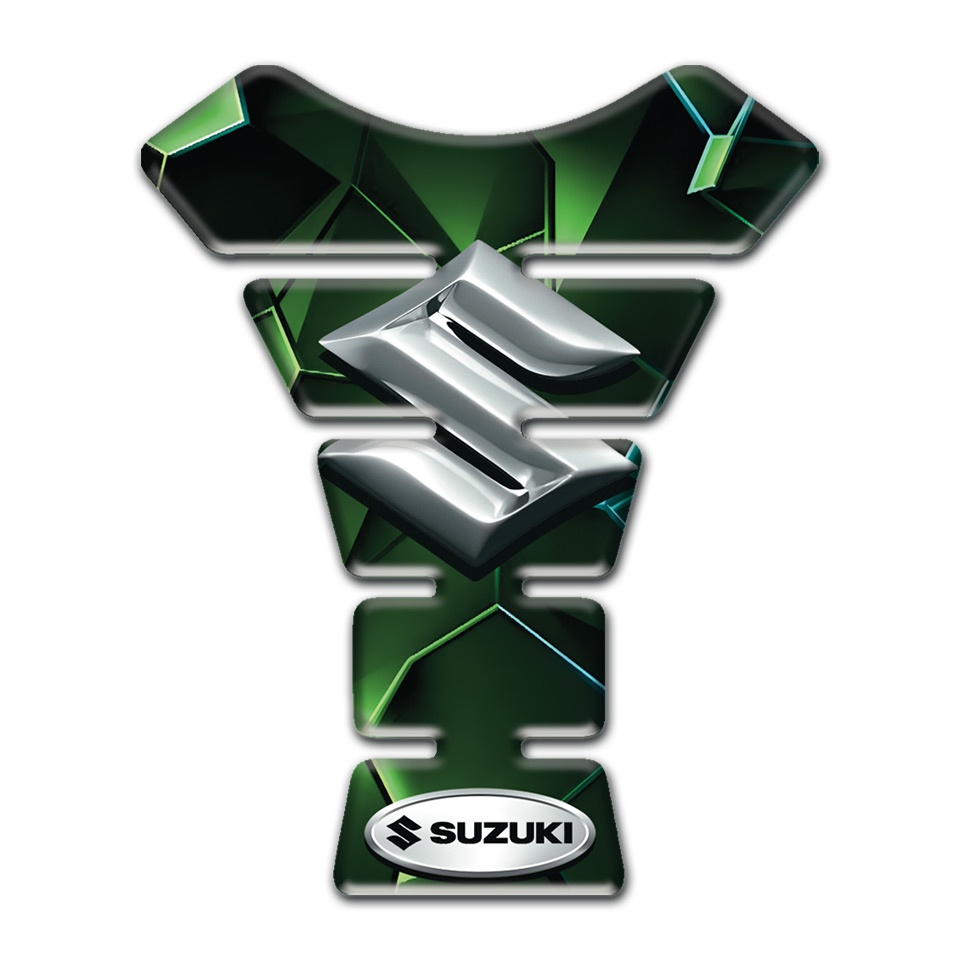 Suzuki Tank Pad Protector Green Diamond Style with 3D Silver Logo