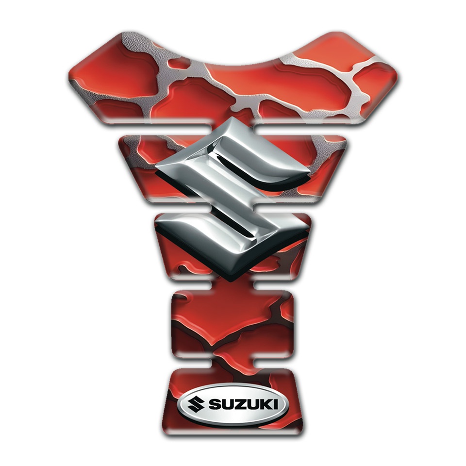 Suzuki Tank Pad Protector Red Clouds Effect 3D Silver Logo