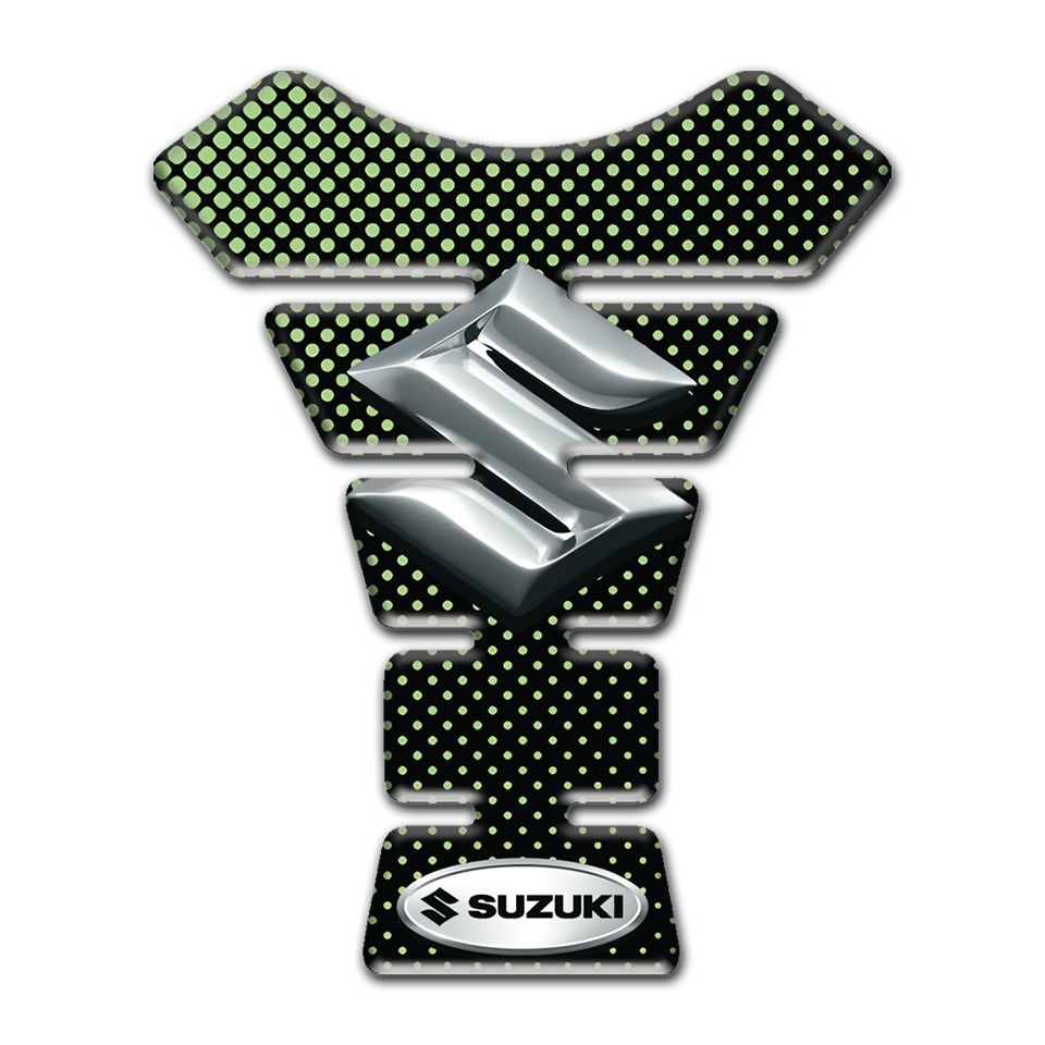 Suzuki Tank Protector Green Dots Base Design with 3D Silver Logo